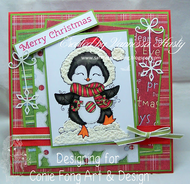 ReplyDeleteHi Vanessa, such an adorable Christmas card. The penguin is so cute and love the backing papers. Thank you for sharing with us at Emerald Faeries and good luck in the draw. Hope to see you again. JenniferDT member x