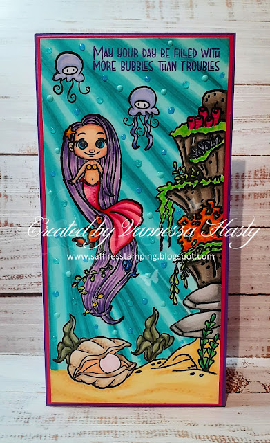 This card uses one of my new sets from Sweet November Stamps, Mermaid Hair along with some stamps from last year's mermaid releases. This is another DL card - perfect for this scene!